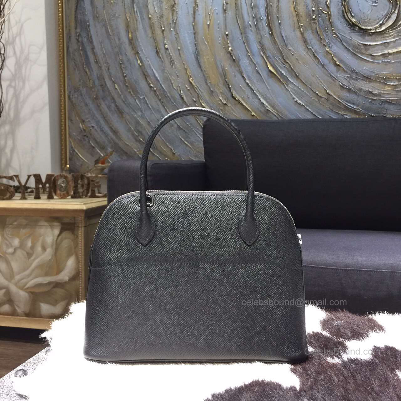 Hermes Bolide 27 Bag Black Epsom Leather Handstitched Silver hw