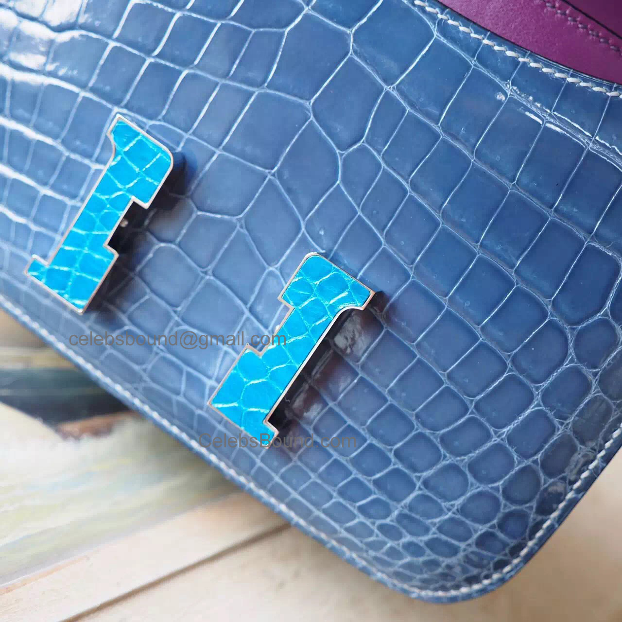 Luxe Palladium Hardware Made from same quality authentic Hermes exquisite crocodile leather Hand stitched by skilled craftsman Hermes stamp "Hermes Paris - Made in France" Hermes Paris embossed on the hardware Color: n5 Cassis/7w Blue Izmir/ n7 Bleu Tempete Size: W7" x H5.9" x D1.6" inches or W18 x H15 x D4 cm