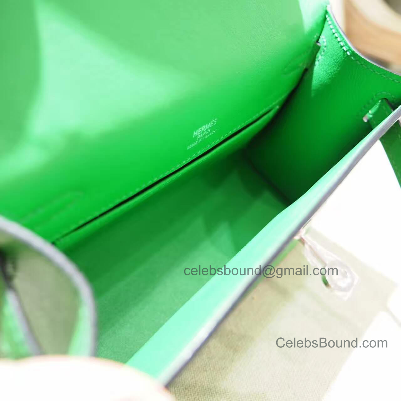 This 1k Bambou swift Hermes Kelly 22 Pochette bag comes with same Hermès iconic logo, Date stamp and Artisan I.D. Code, Clochette (keys and lock set), dust bag.