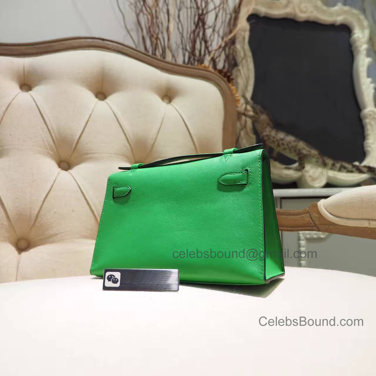 Hermes Mini Kelly 22 Pochette Bag in 1k Bambou Swift PHW